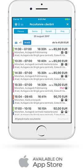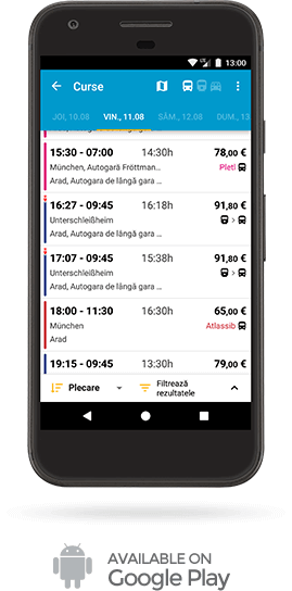 Conform sloganului nostru "Toate cursele dintr-o privire" poți găsi curse de la Eurolines, Atlassib, Flixbus și mulți alții foarte clar și transparent: cu doar câteva clickuri găsești cea mai bună și ieftină cursă.